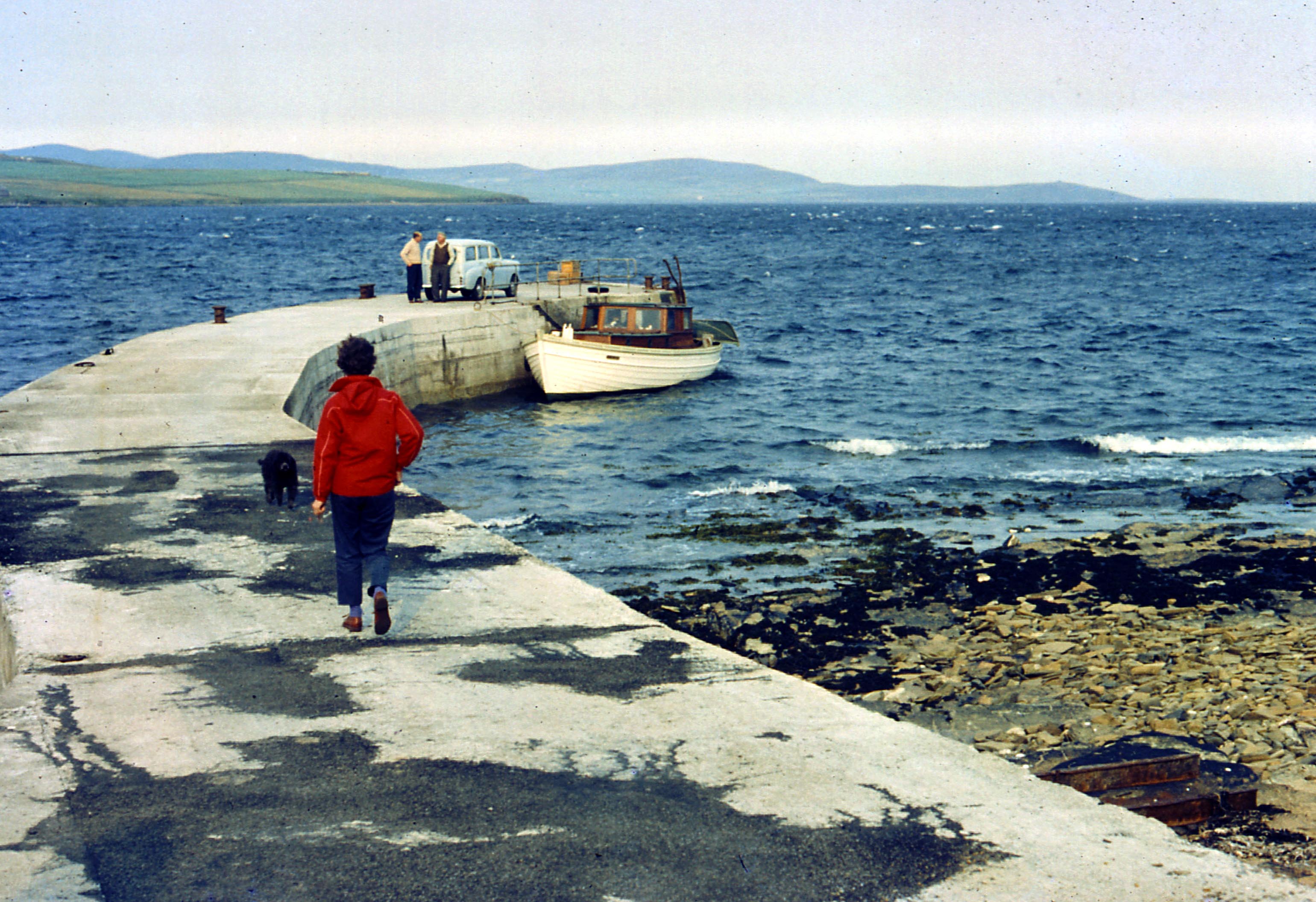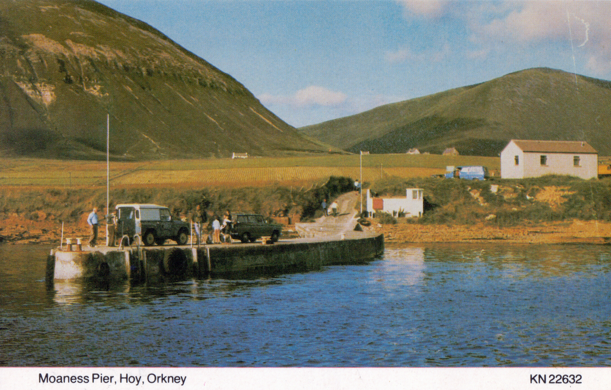 The Moanesss Pier has changed over the years from a slipway with boulders to a concrete curve that has been heightened and extended. Even now with the improved pier there are many days a year when the service cannot call at Moaness due to sea state.