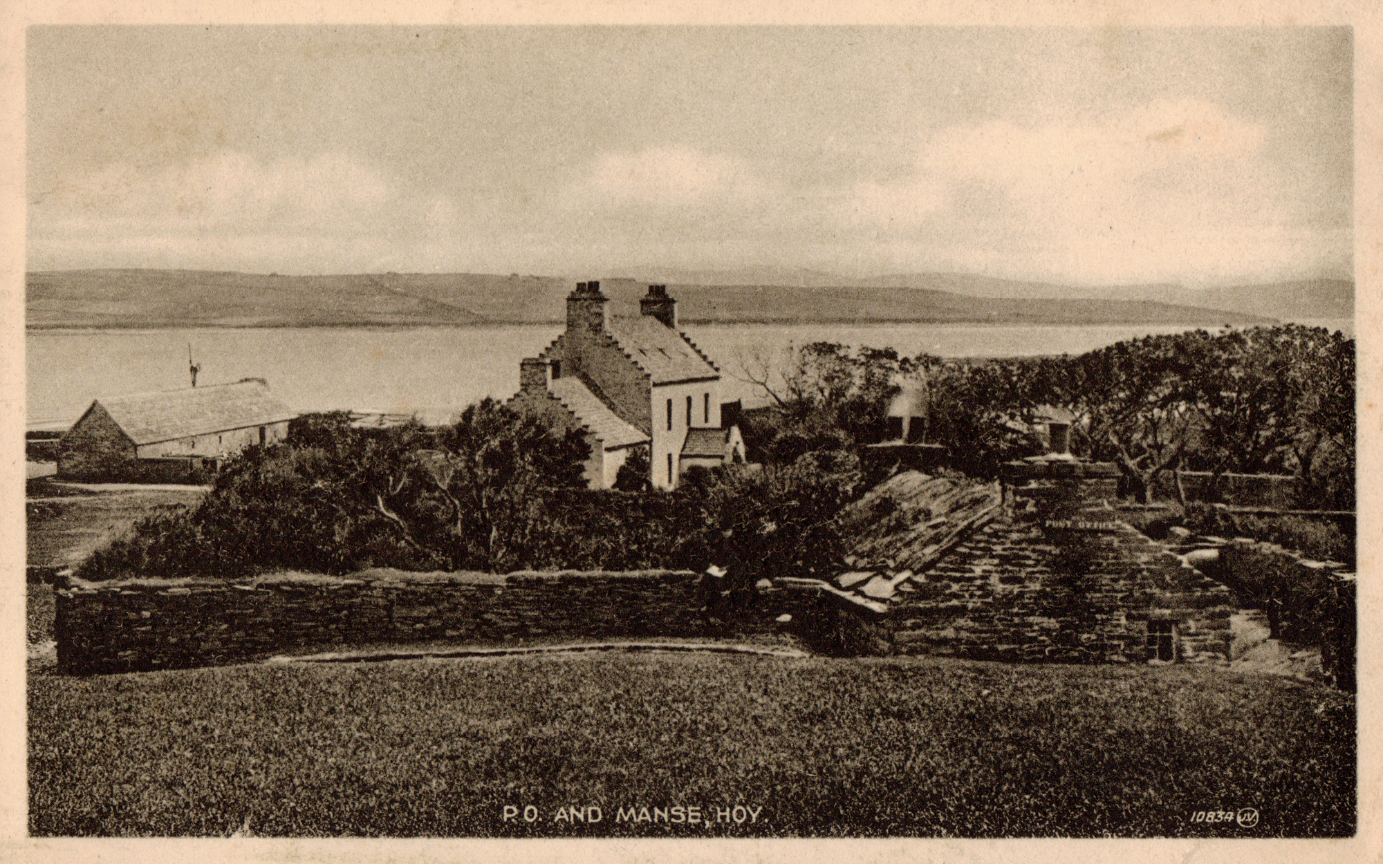 In the postcard on the right you can see the Post Office uin the foreground when it was sited at the manse farm of Glebe. Sir Walter Scott visited the Manse, also known as Burra House. Scott was on a story gathering trip for his book The Pirate. Scott visited the Dwarfie Stone which he set as the home of Trollid in his novel. The minister told the writer a terrifying tale, Scott noted it in his diary: