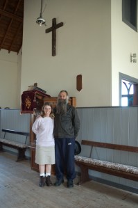 You never know who you are going to meet at the Hoy Kirk. Last week the great grandson of the minister of the kirk came by.