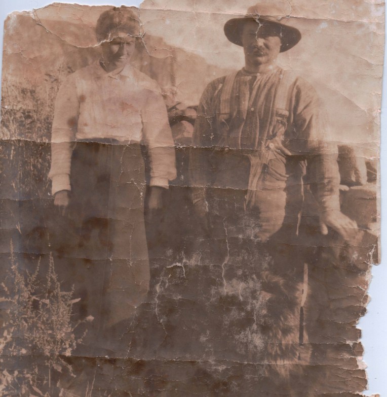 This photograph was submitted by Mary Mackay née Moar. The people in the portrait have been identified as James and Betty Ritch of the Shore, Rackwick.