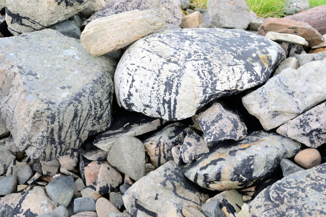 Stones dripped with tar can be seen on the shore. A relic from when boats were maintained here. Read the Rackwick Survey here.