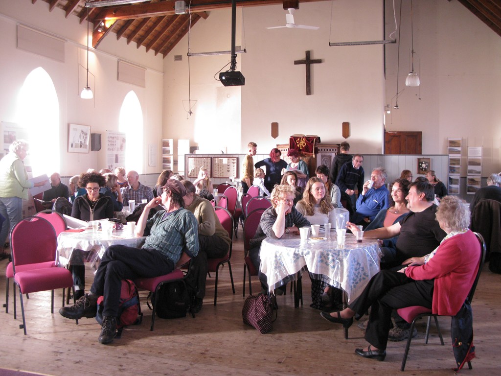 And for your comfort we have toilets, a kitchen where you can make a cup of tea and the kirk is set out with table and chairs.
