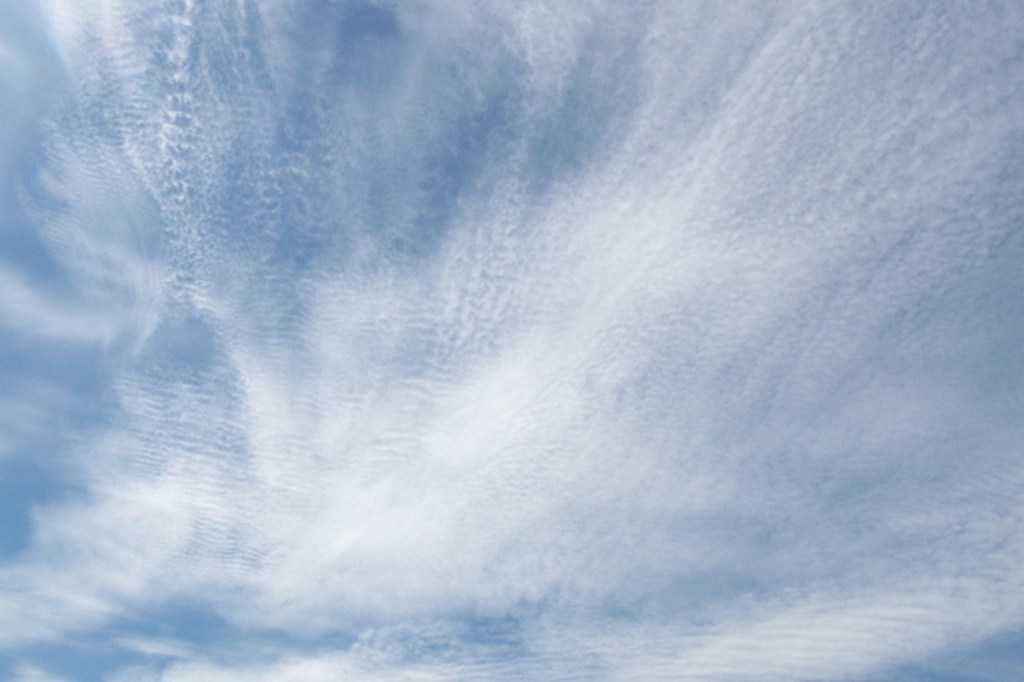 This cloud is more commonly known as a mackerel sky and goes with the weather prediction of ‘not long wet, not long dry’.